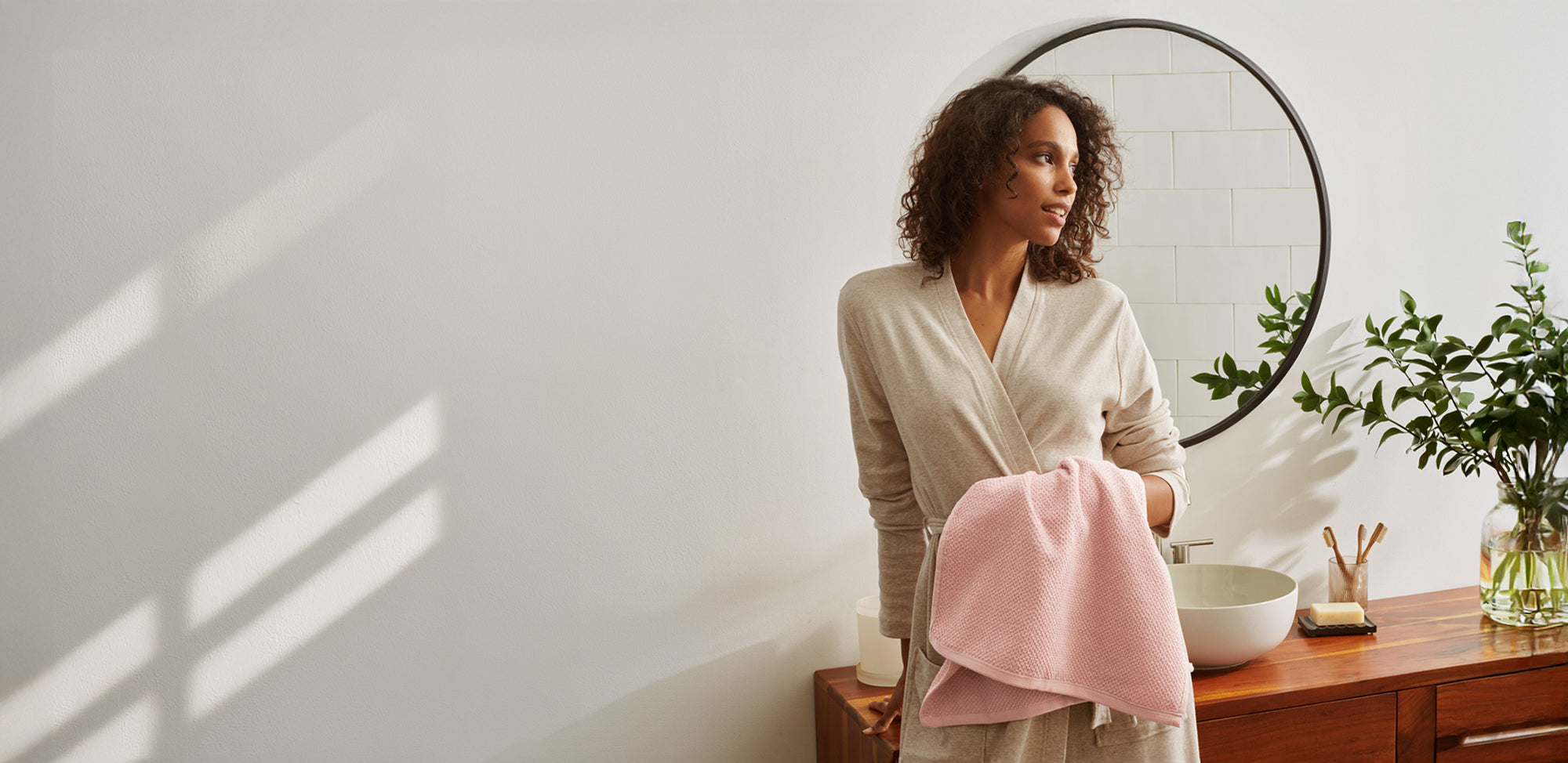 Soft and ever-absorbent organic bath towels make bath time feel like a luxury.